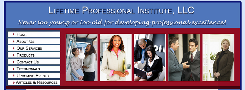 Click here to register for workshopsLifetime Professional Institute, LLC is a personal and professional training organization developed to help you obtain the secrets to success by mastering the important social skills in your personal and professional life.Enhance your image by developing and refining your social skills, improving your self-confidence, and building successful relationships. Lifetime Professional Institute offers interactive, informative, customized seminars and workshops designed to enhance the image of individuals at all ages. Seminars and workshops may vary from a one-hour keynote to a two-day program. Participants will leave fortified with tools and tips to turn their lives around. |